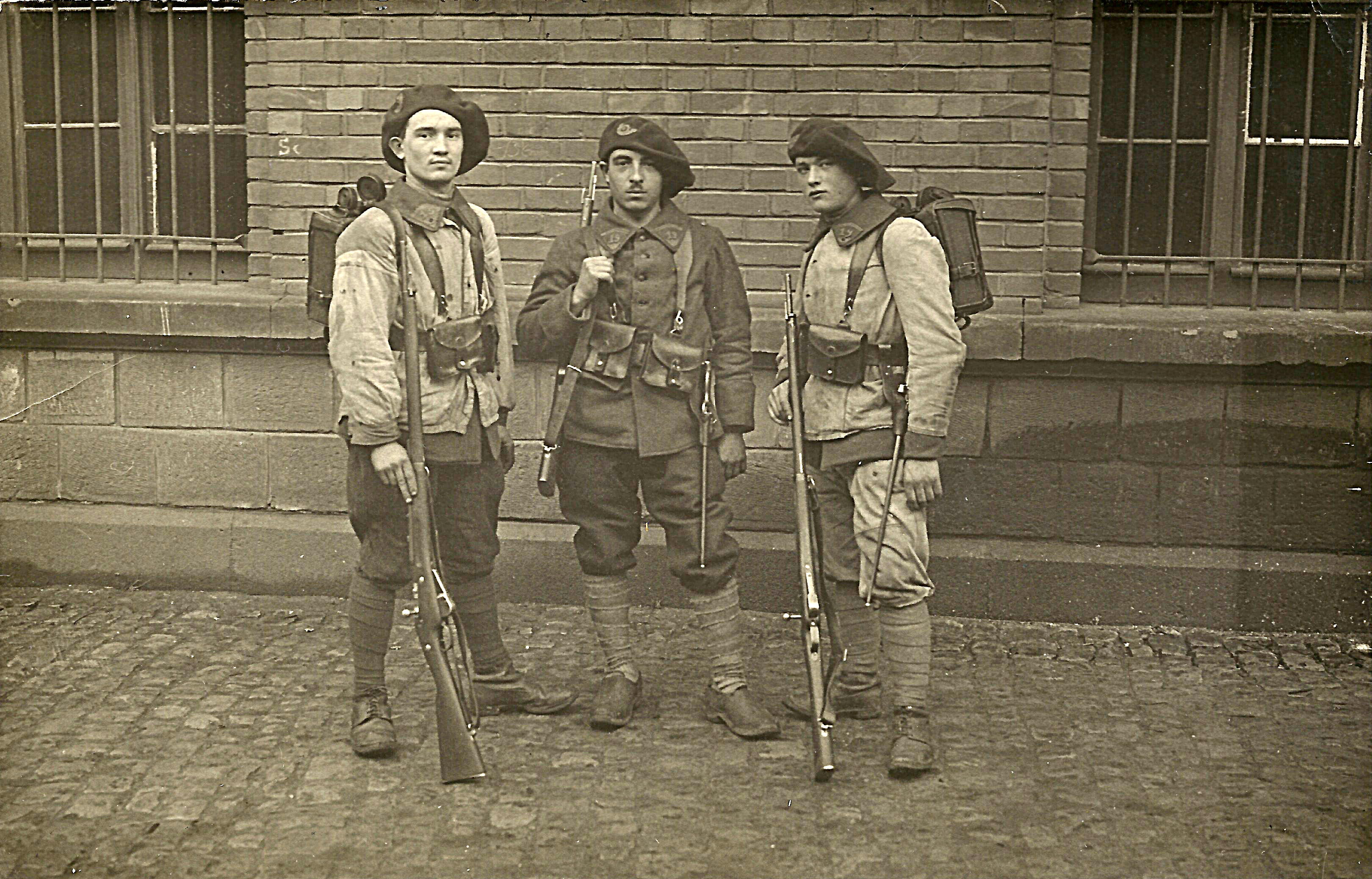 Photo informelle du trio de jeunes militaires dont un fait probablement partie d'un des familles Guiraud/Devèze ou Bax/Brunel.